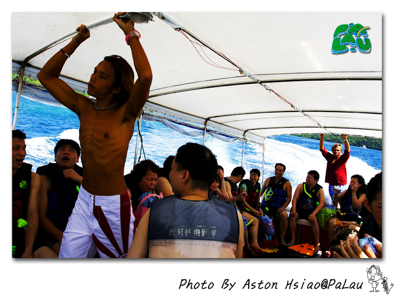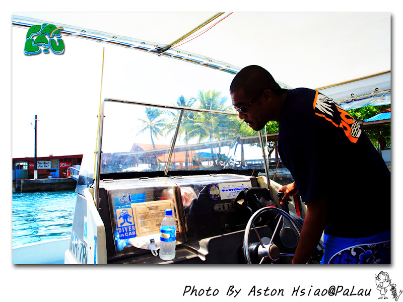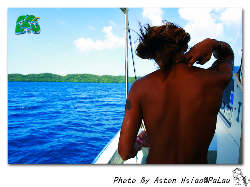 左邊吊在船頭是Simon(導遊-台灣人),右邊掛在船尾的是阿里巴巴(司機兼廚師兼導遊助理-帛琉當地人[據說是混血兒])