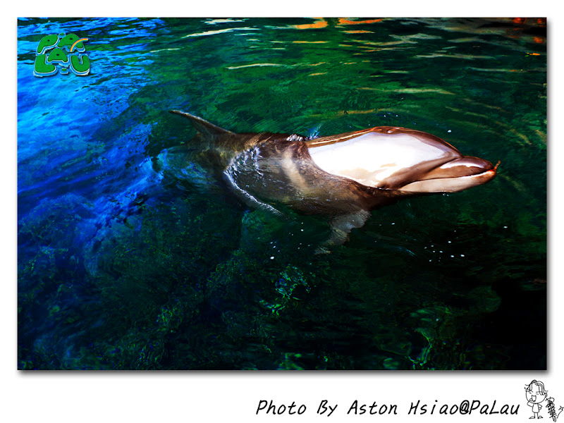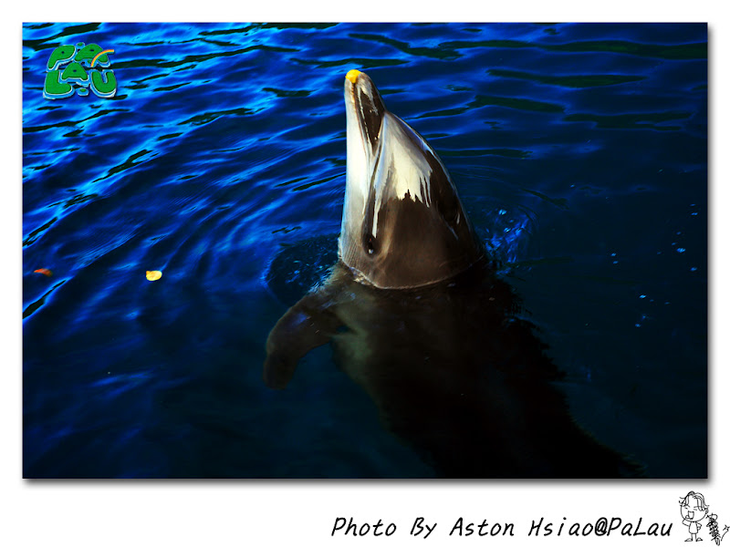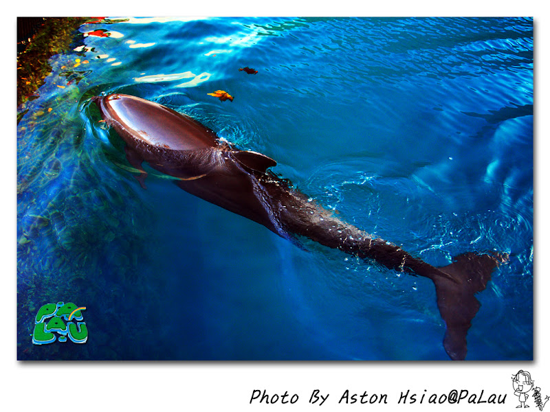 (是落葉,這邊的海豚被訓練成:叼落葉跟訓練人員換取鮮魚或是冰塊)