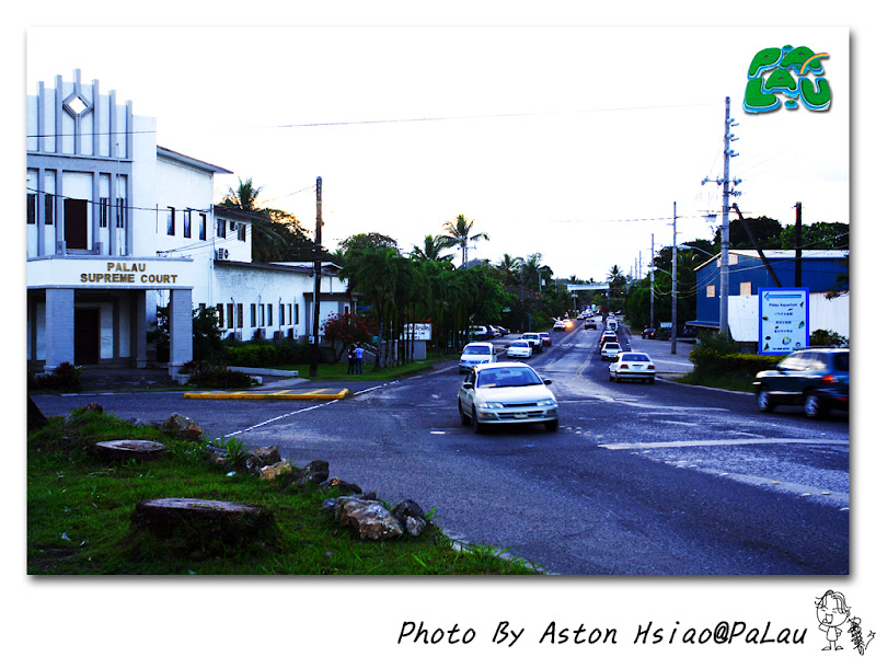 左手邊的白色建築物為帛琉最高法院(Supreme Court)